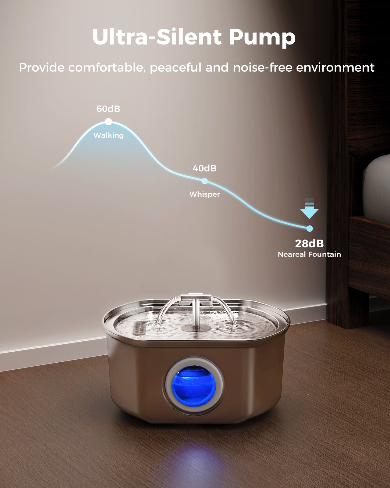 Neareal designs stainless-steel pet water fountains and filtration that make hydration simple—every day, for every home.