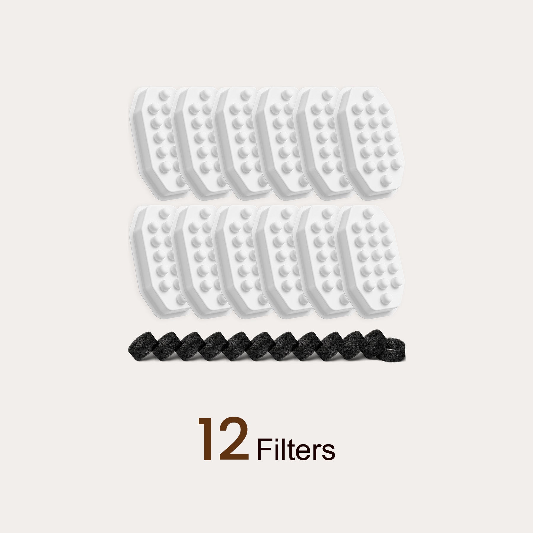 12-Pack Replacement Filters and Sponges for Oval 108oz/3.2L Cat fountain